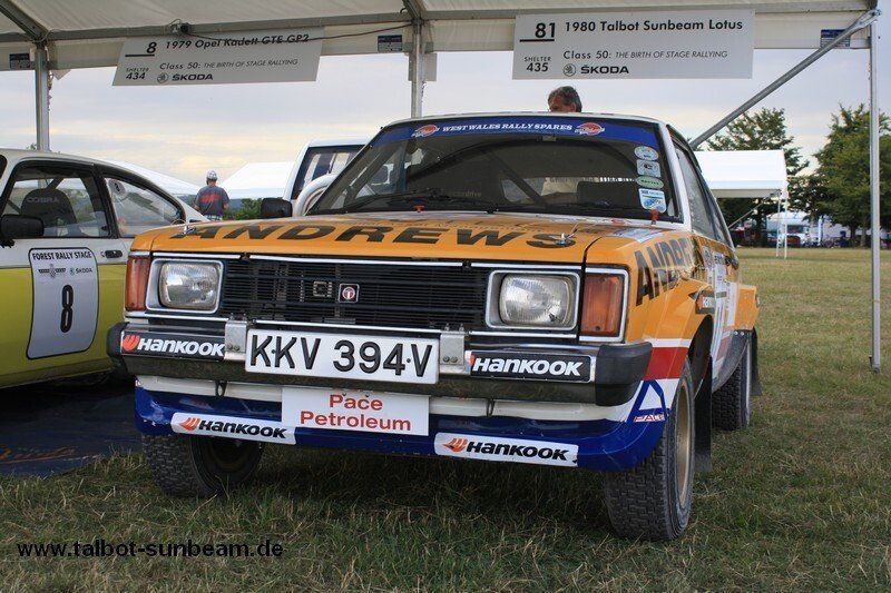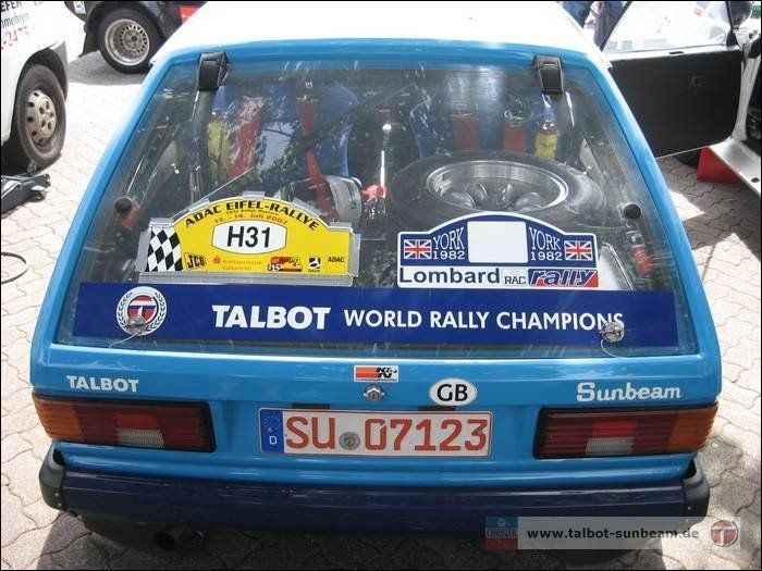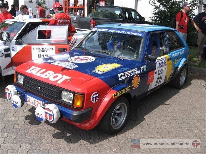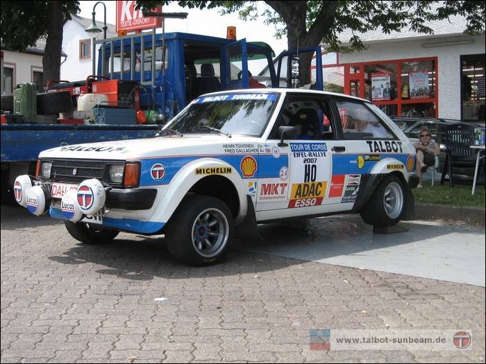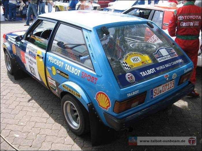 Der originale Talbot Werkswagen mit dem Kennzeichen YHP 333X wurde vom Talbot Competition Department für die Britische Open Rallye Meisterschaft aufgebaut. Es war das erste Fahrzeug, welches in den neuen Peugeot Talbot Sport Farben lackiert wurde.