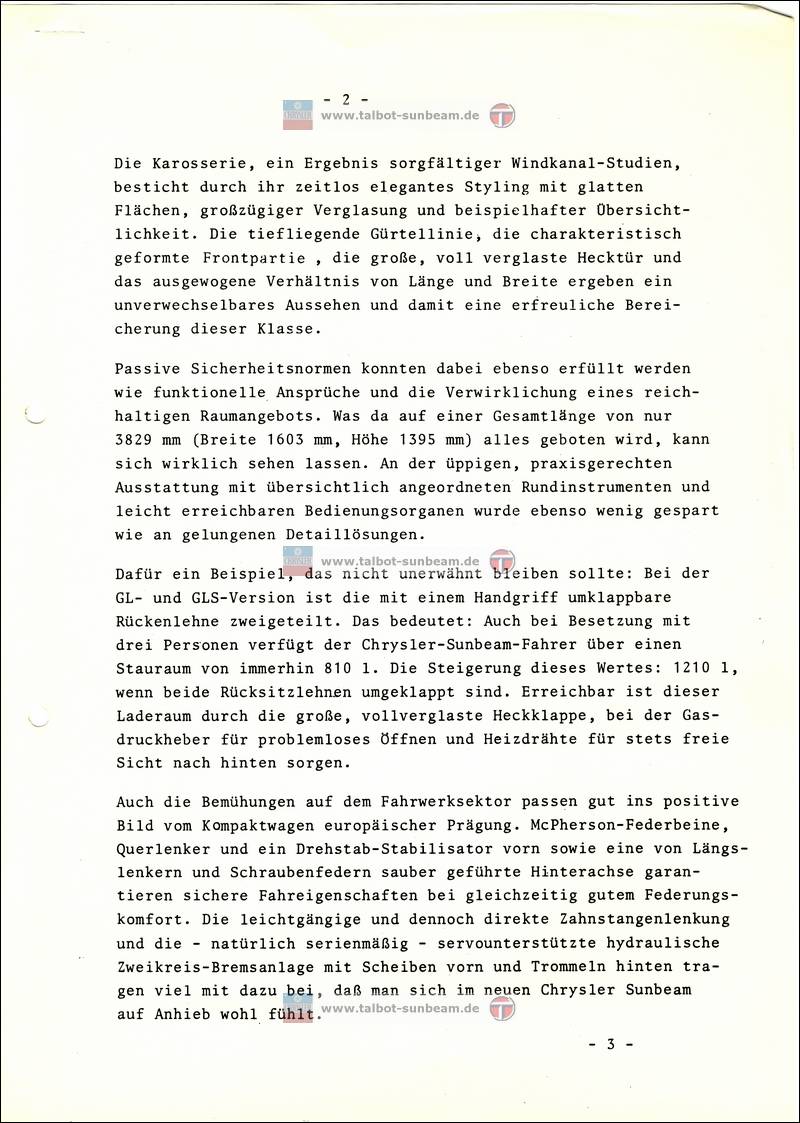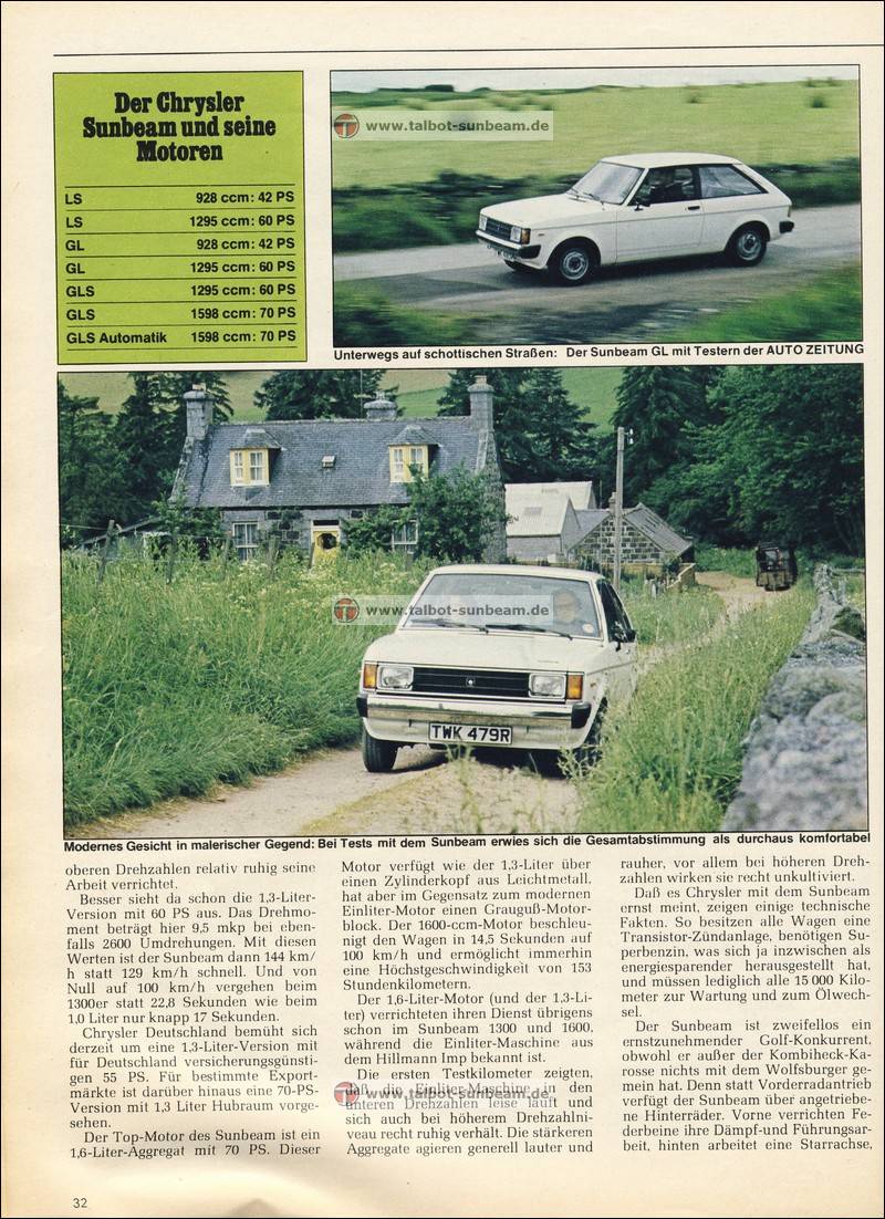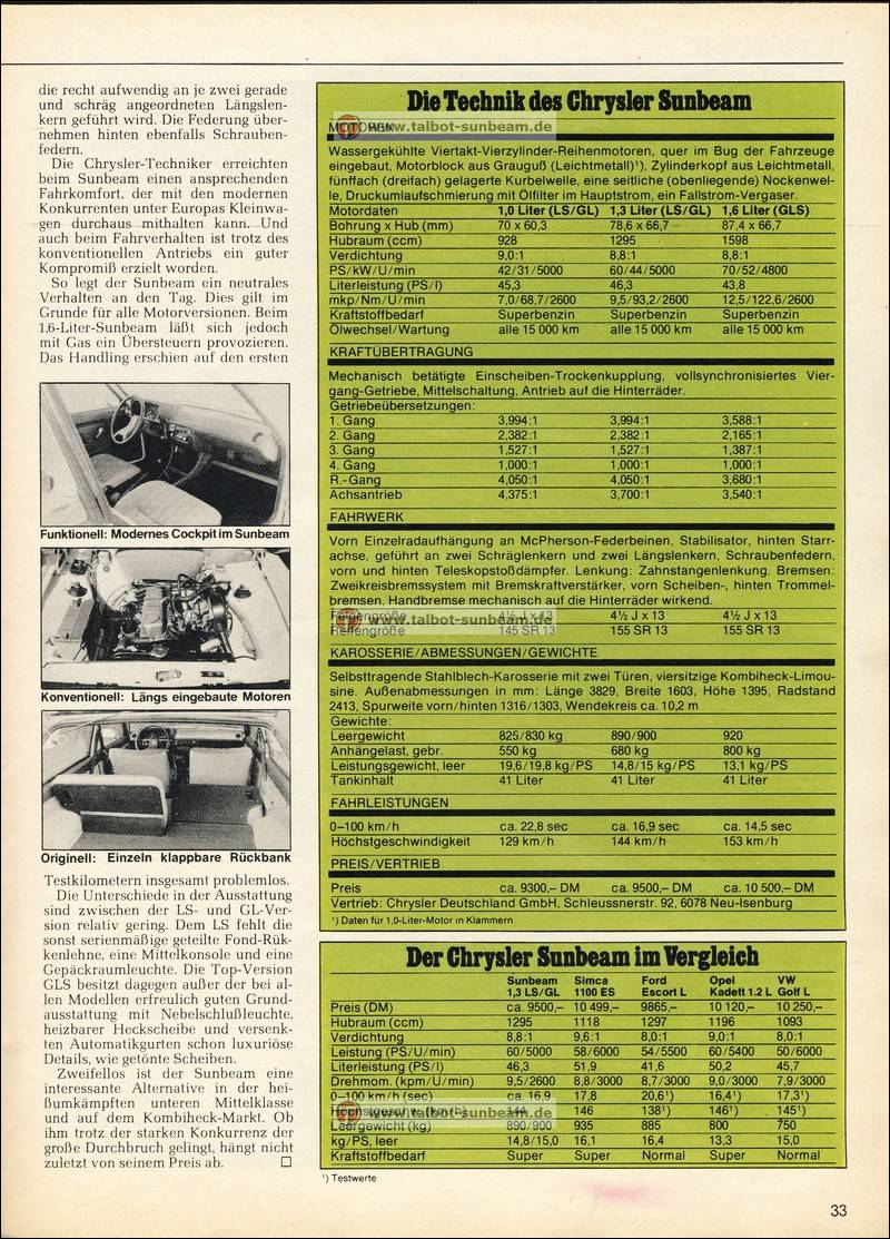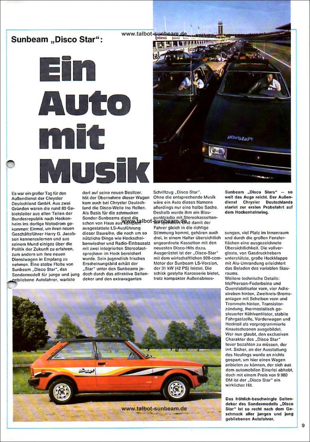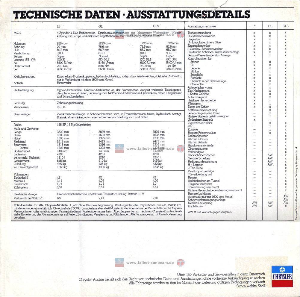 Information Chrysler Deutschland 1977 zur Sunbeam Einführung / Launch Information Chrysler Germany 1977