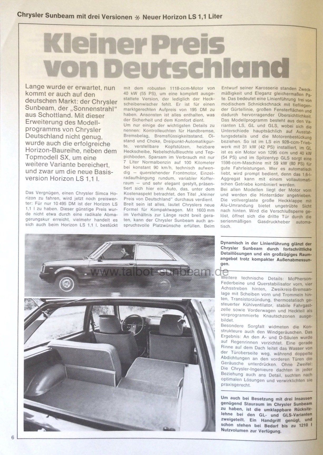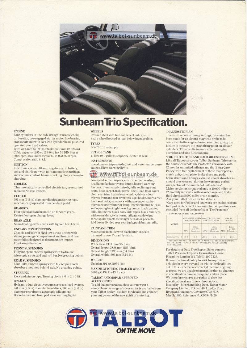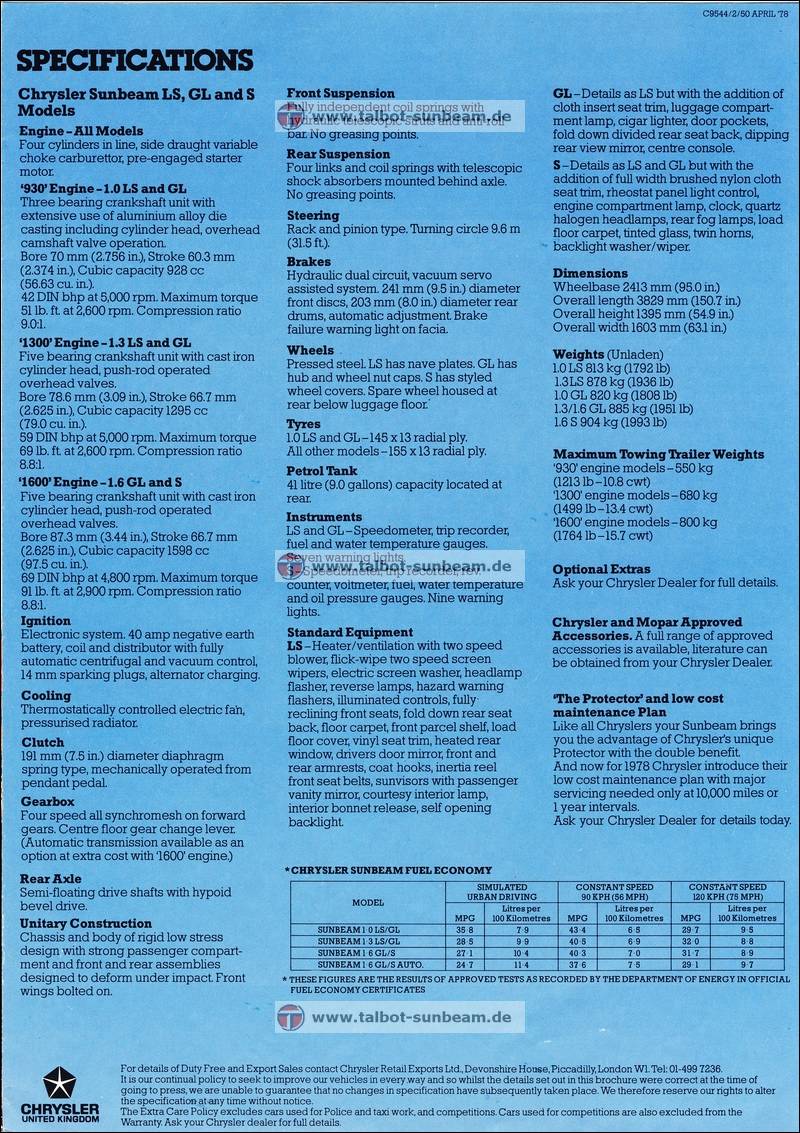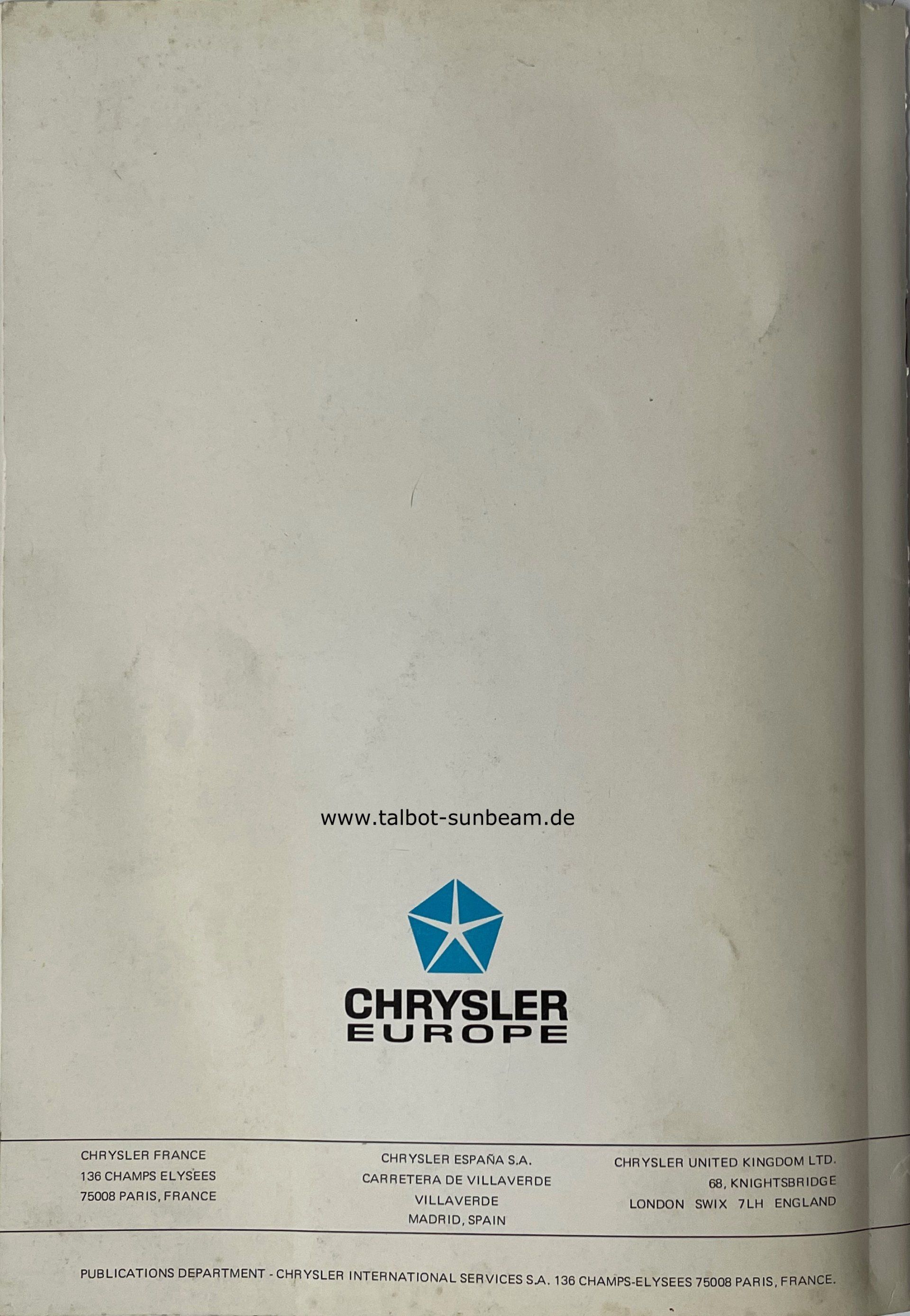 Information Chrysler Deutschland 1977 zur Sunbeam Einführung / Launch Information Chrysler Germany 1977